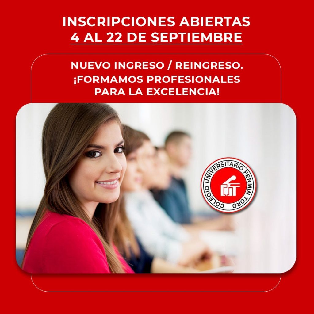 Inscripciones abiertas durante el mes de septiembre para alumnos regulares, reingreso y nuevo ingreso.